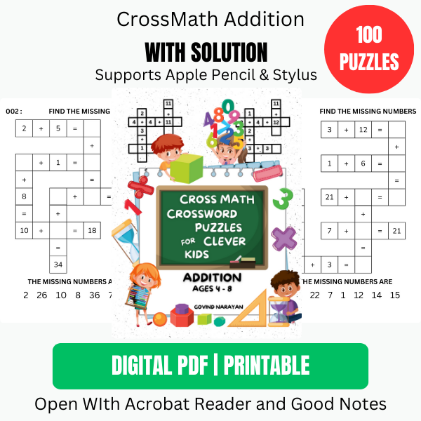 100 CrossMath Puzzles Addition for Kids (Ages 48) Ebook Printable PDF